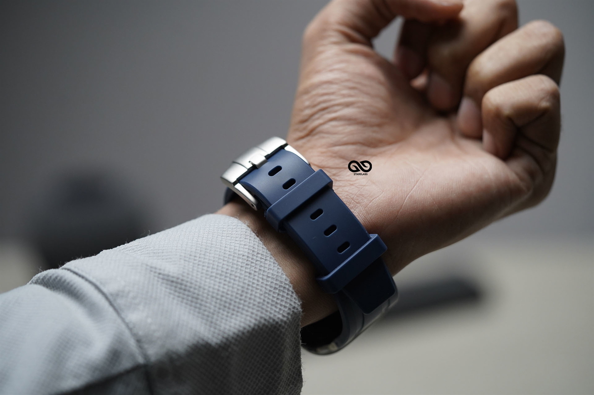This is a nice looking band, goes with all the shirts as its a go to color blue. Got many compliments thank you starelabs
