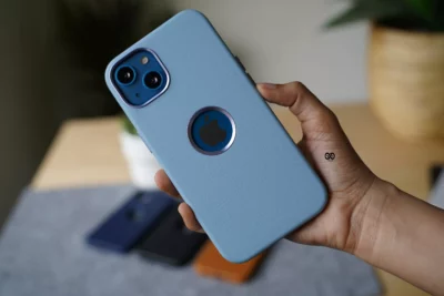 Grainy Textured Vegan Leather Case with Logo Cut for iPhone 13