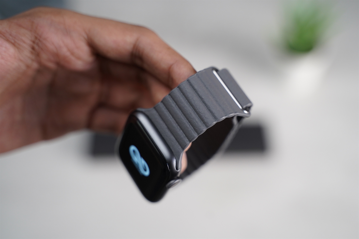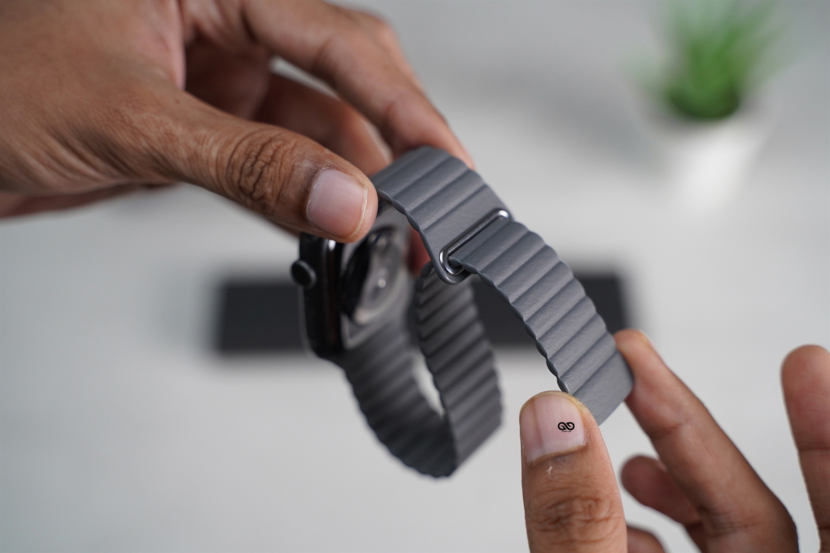 1 review for Grey Magnetic Leather Loop for Apple Watch 42MM 41MM 40MM Series 4 5 6 7 8 9 10 11 SE SE 2 Gen