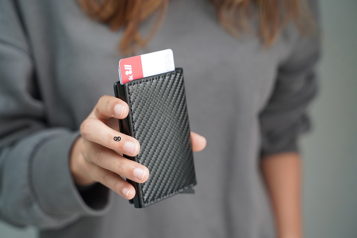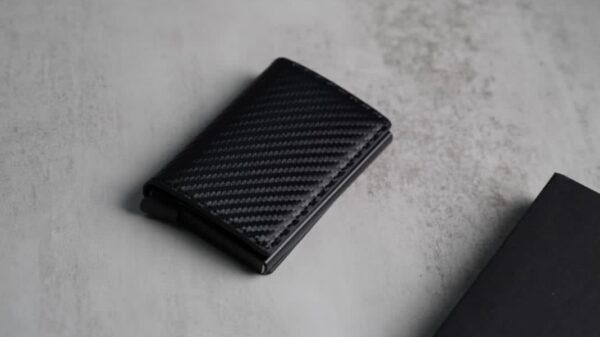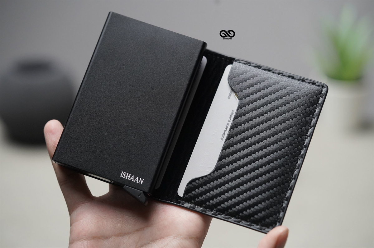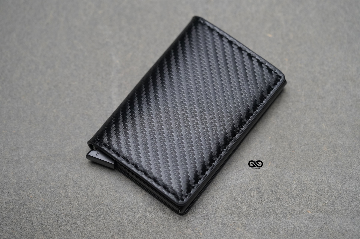 Personalized Slim Carbon Fiber Leather Card Holder with Single Slot Wallet