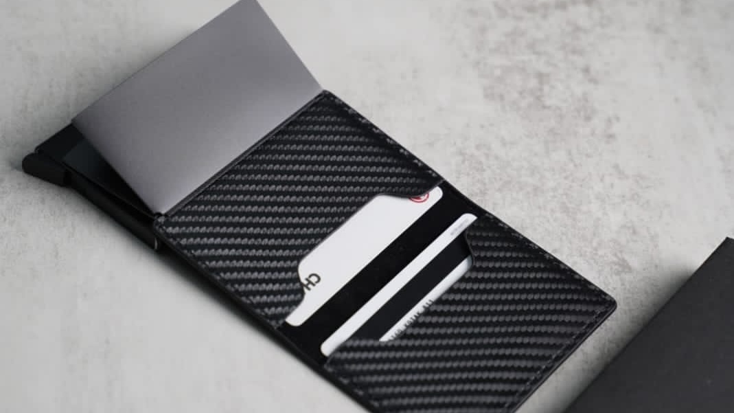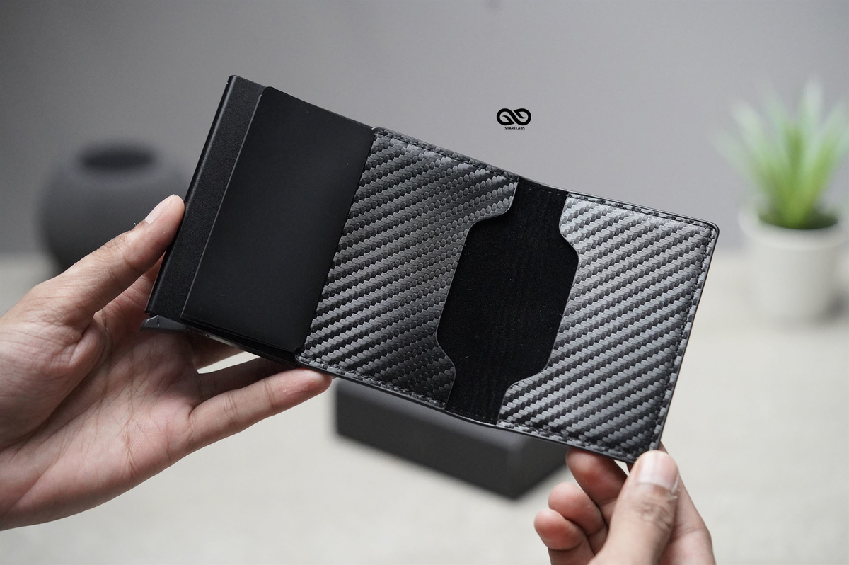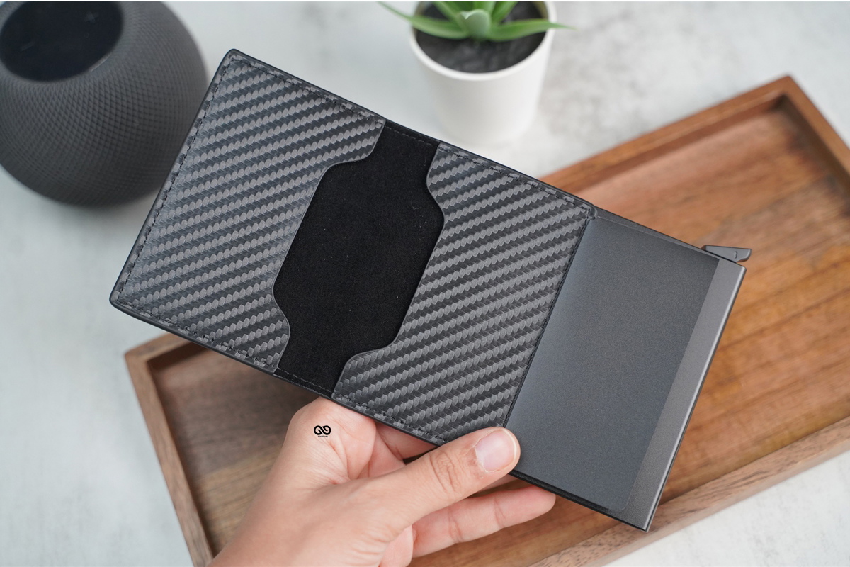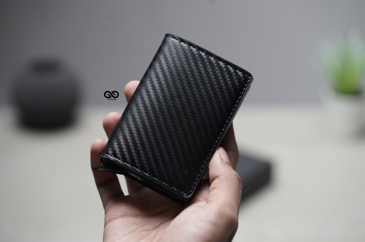 Personalized Slim Carbon Fiber Leather Card Holder with Single Slot Wallet