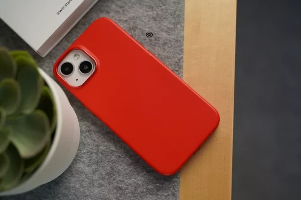 Red MagSafe Vegan Leather Case For iPhone 14