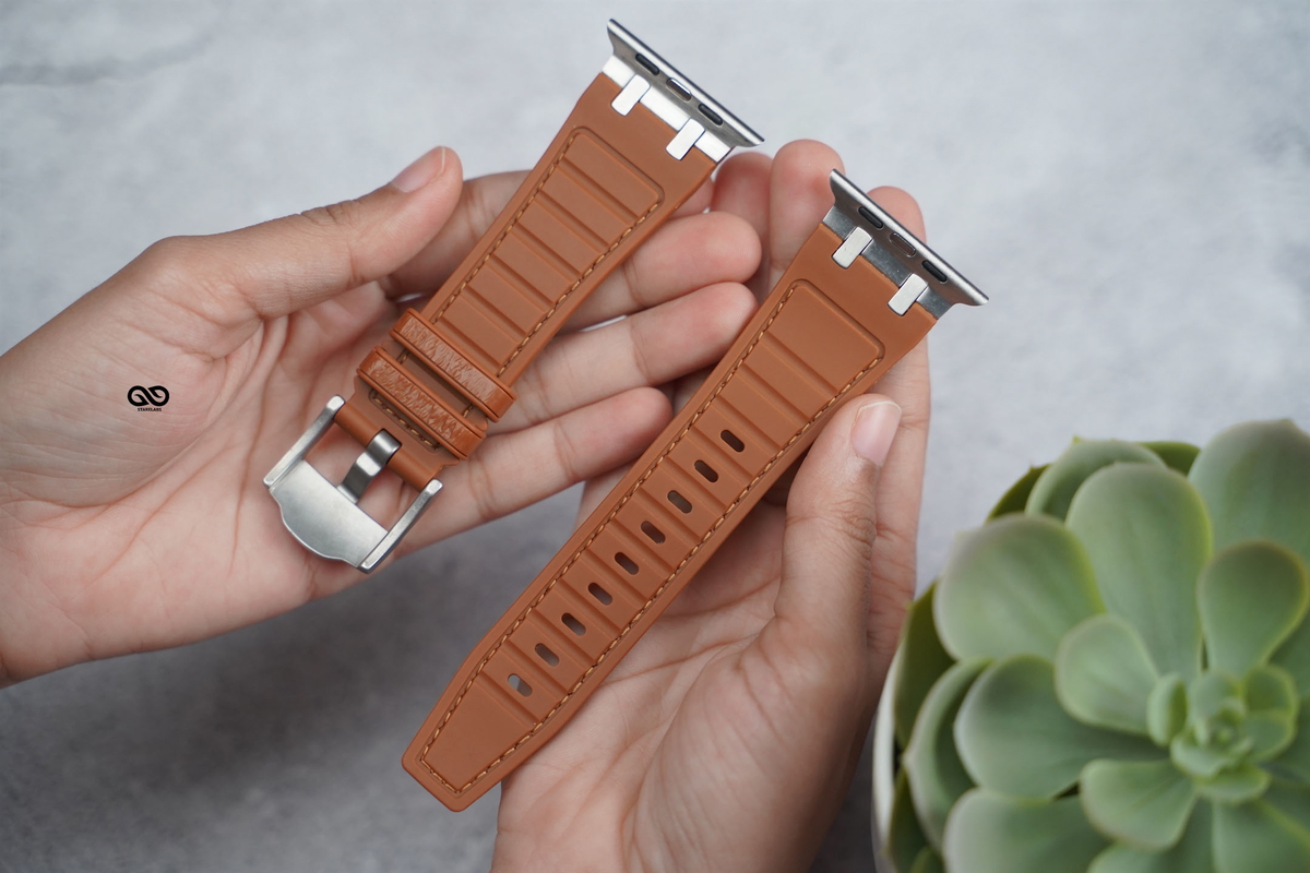 Cinnamon brown Silicone Faux Leather Strap For Apple Watch 49 MM Series Ultra/Ultra 2 /Ultra 3