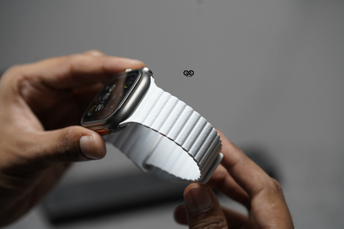 White Magnetic leather Loop For Apple Watch 49 (Series Ultra/Ultra 2/Ultra 3)
